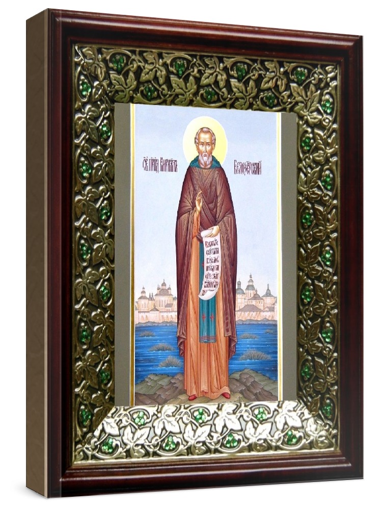Икона кирилл белозерский (21х24), киот со стразами