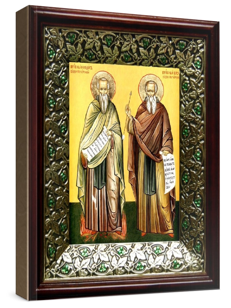 Икона василий и феодор печерские (21х24), киот со стразами.