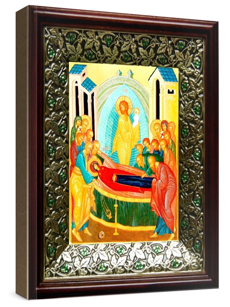 Икона успение пресвятой богородицы (21х24), киот со стразами.