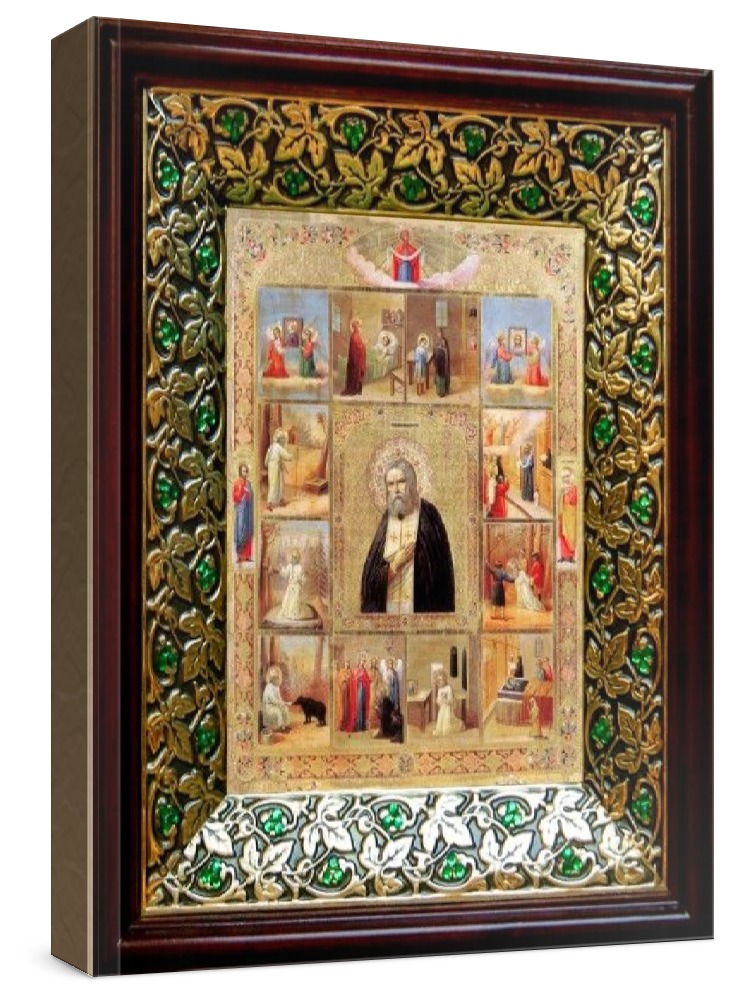 Икона серафим саровский (21х24), киот со стразами
