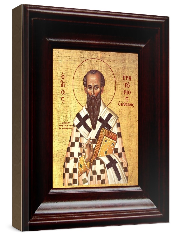 Икона григорий богослов (21х24), простой киот. Икона выполняется на заказ. Срок изготовления - 3-7 дней. Лик нанесен методом шелкографии на цельную липовую доску, покрытую левкасом (специальным грунтом под живопись). Использованы минеральные (природные) краски. Размер иконы без киота (см): 13х16, с киотом: 21х24. Киот (рамка) выполнен из березы. Икона освящена.