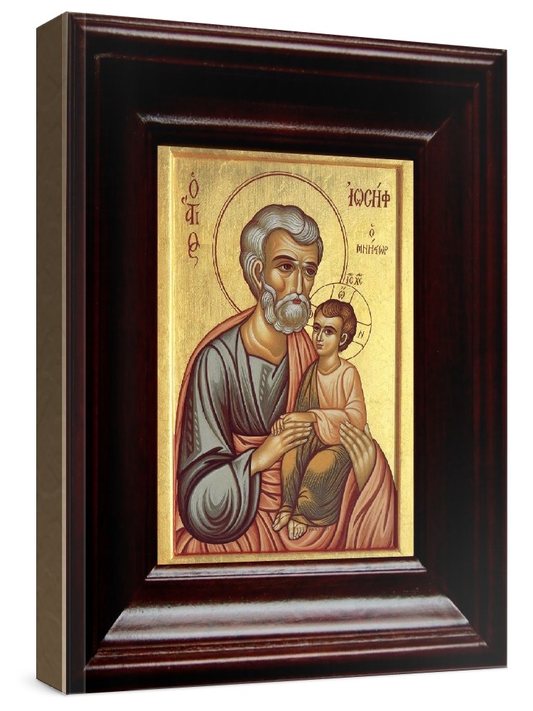 Икона иосиф обручник (21х24), простой киот. Икона выполняется на заказ. Срок изготовления - 3-7 дней. Лик нанесен методом шелкографии на цельную липовую доску, покрытую левкасом (специальным грунтом под живопись). Использованы минеральные (природные) краски. Размер иконы без киота (см): 13х16, с киотом: 21х24. Киот (рамка) выполнен из березы. Икона освящена.