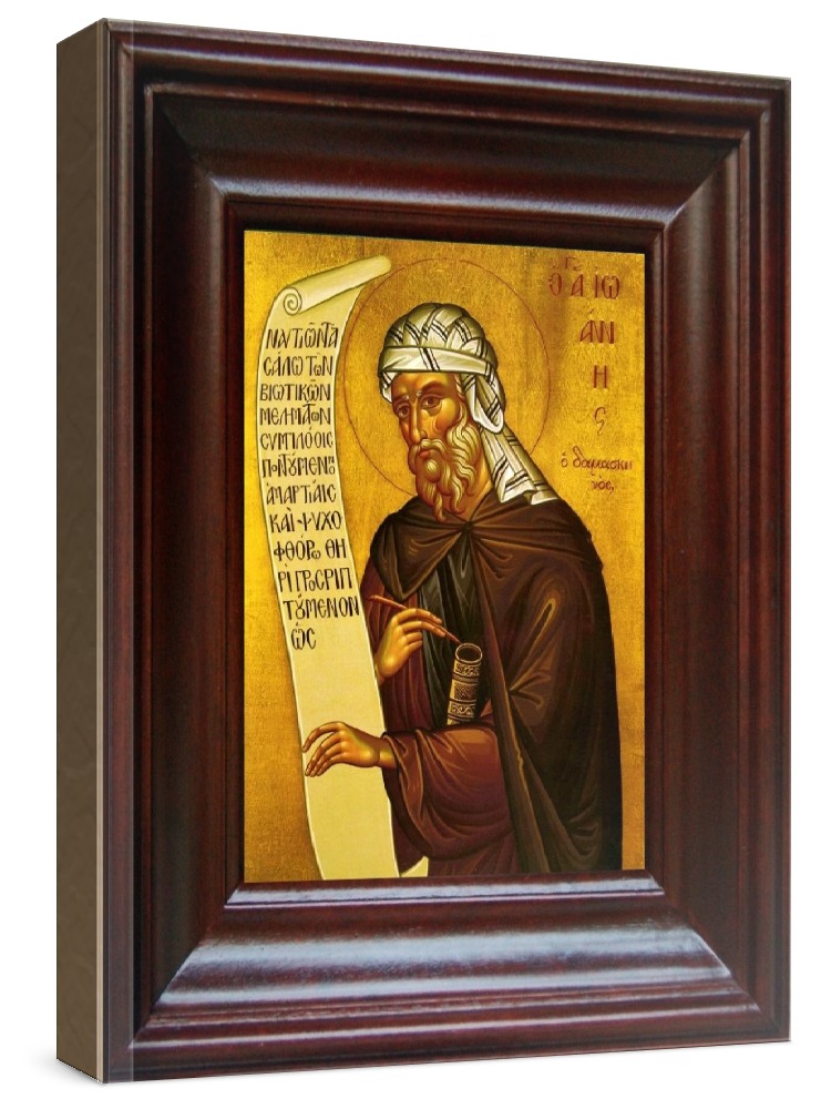 Икона иоанн дамаскин (21х24), простой киот. Икона выполняется на заказ. Срок изготовления - 2-5 дней. Лик нанесен методом шелкографии на цельную липовую доску, покрытую левкасом (специальным грунтом под живопись). Использованы минеральные (природные) краски. Размер иконы без киота (см): 13х16, с киотом: 21х24. Киот (рамка) выполнен из березы. Икона освящена.