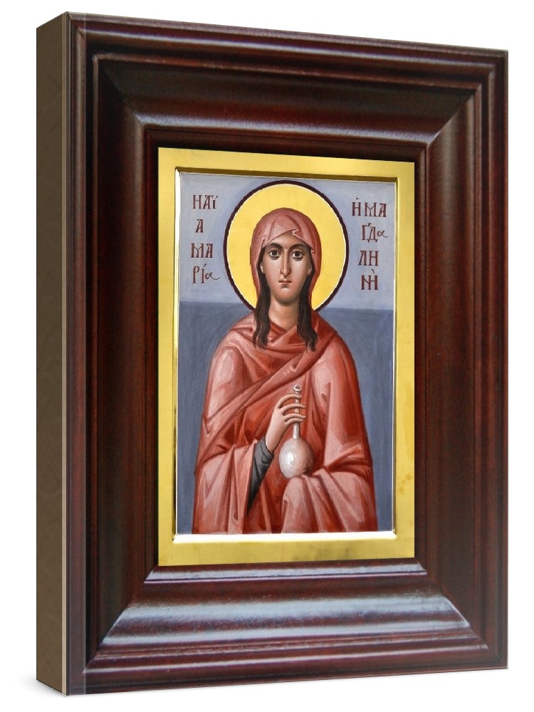 Икона мария магдалина (21х24), простой киот. Икона выполняется на заказ. Срок изготовления - 2-5 дней. Лик нанесен методом шелкографии на цельную липовую доску, покрытую левкасом (специальным грунтом под живопись). Использованы минеральные (природные) краски. Размер иконы без киота (см): 13х16, с киотом: 21х24. Киот (рамка) выполнен из березы. Икона освящена.