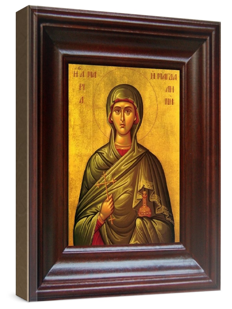 Икона мария магдалина (21х24), простой киот. Икона выполняется на заказ. Срок изготовления - 2-5 дней. Лик нанесен методом шелкографии на цельную липовую доску, покрытую левкасом (специальным грунтом под живопись). Использованы минеральные (природные) краски. Размер иконы без киота (см): 13х16, с киотом: 21х24. Киот (рамка) выполнен из березы. Икона освящена.