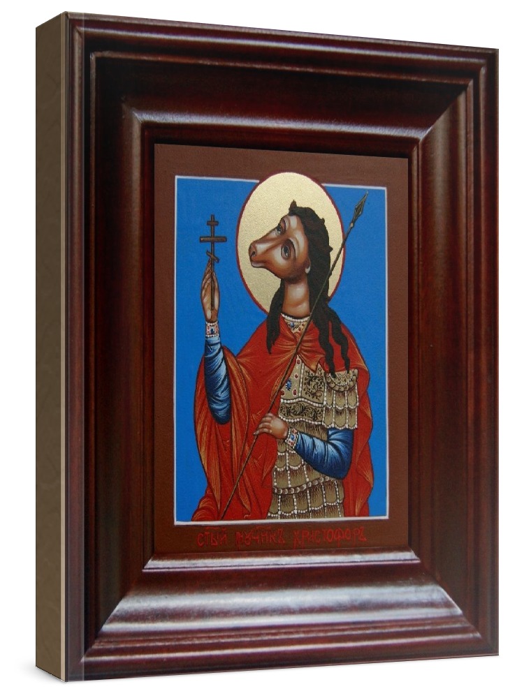 Икона христофор псеглавец (21х24), простой киот.