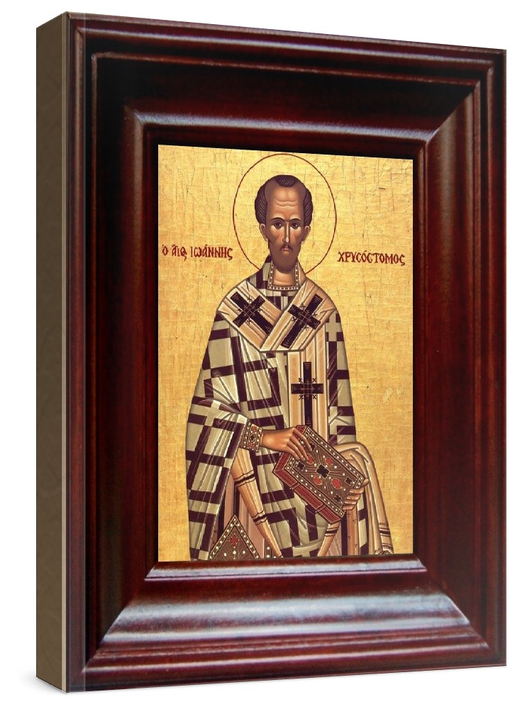 Икона иоанн златоуст (21х24), простой киот. Икона выполняется на заказ. Срок изготовления - 2-5 дней. Лик нанесен методом шелкографии на цельную липовую доску, покрытую левкасом (специальным грунтом под живопись). Использованы минеральные (природные) краски. Размер иконы без киота (см): 13х16, с киотом: 21х24. Киот (рамка) выполнен из березы. Икона освящена.