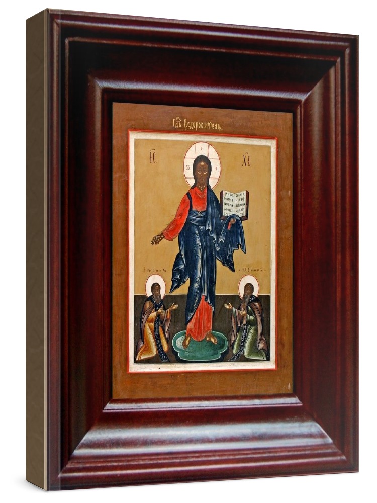 Икона спас смоленский (21х24), простой киот. Икона выполняется на заказ. Срок изготовления - 2-5 дней. Лик нанесен методом шелкографии на цельную липовую доску, покрытую левкасом (специальным грунтом под живопись). Использованы минеральные (природные) краски. Размер иконы без киота (см): 13х16, с киотом: 21х24. Киот (рамка) выполнен из березы. Икона освящена.