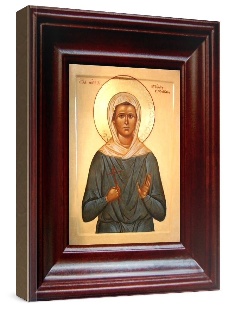 Икона наталия силуянова (21х24), простой киот. Икона выполняется на заказ. Срок изготовления - 2-5 дней. Лик нанесен методом шелкографии на цельную липовую доску, покрытую левкасом (специальным грунтом под живопись). Использованы минеральные (природные) краски. Размер иконы без киота (см): 13х16, с киотом: 21х24. Киот (рамка) выполнен из березы. Икона освящена.