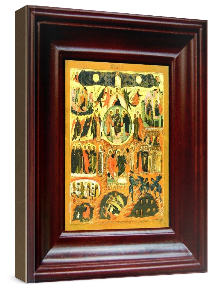 Икона величит душа моя господа (21х24), простой киот. Лик нанесен методом шелкографии на цельную липовую доску, покрытую левкасом (специальным грунтом под живопись). Использованы минеральные (природные) краски. Размер иконы без киота (см): 13х16, с киотом: 21х24. Киот со стеклом, выполнен из березы. Икона освящена.