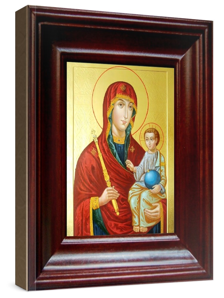 Минская икона бм (21х24), простой киот. Лик нанесен методом шелкографии на цельную липовую доску, покрытую левкасом (специальным грунтом под живопись). Использованы минеральные (природные) краски. Размер иконы без киота (см): 13х16, с киотом: 21х24. Киот со стеклом, выполнен из березы. Икона освящена.