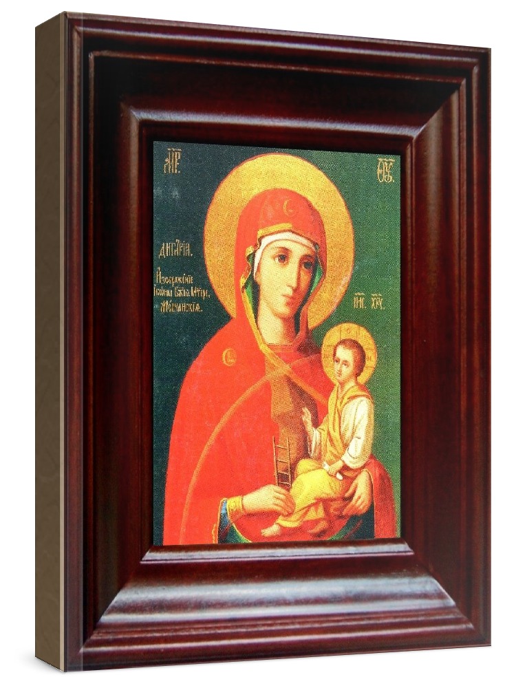 Молченская икона бм (21х24), простой киот. Лик нанесен методом шелкографии на цельную липовую доску, покрытую левкасом (специальным грунтом под живопись). Использованы минеральные (природные) краски. Размер иконы без киота (см): 13х16, с киотом: 21х24. Киот со стеклом, выполнен из березы. Икона освящена.