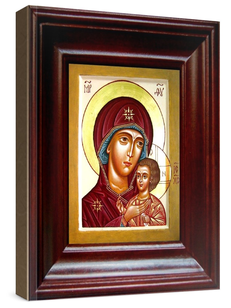 Петровская икона бм (21х24), простой киот. Лик нанесен методом шелкографии на цельную липовую доску, покрытую левкасом (специальным грунтом под живопись). Использованы минеральные (природные) краски. Размер иконы без киота (см): 13х16, с киотом: 21х24. Киот со стеклом, выполнен из березы. Икона освящена.