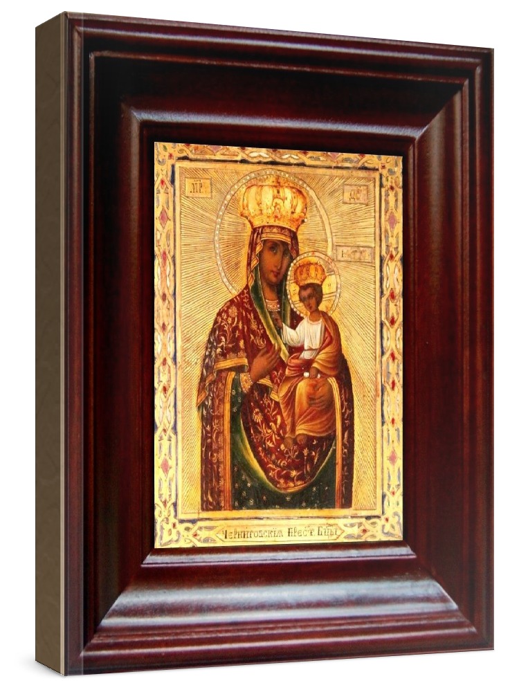 Ильинско-черниговская икона бм (21х24), простой киот. Лик нанесен методом шелкографии на цельную липовую доску, покрытую левкасом (специальным грунтом под живопись). Использованы минеральные (природные) краски. Размер иконы без киота (см): 13х16, с киотом: 21х24. Киот со стеклом, выполнен из березы. Икона освящена.