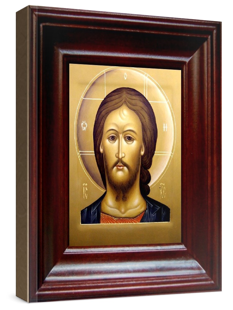 Икона спас оплечный (21х24), простой киот. Лик нанесен методом шелкографии на цельную липовую доску, покрытую левкасом (специальным грунтом под живопись). Использованы минеральные (природные) краски. Размер иконы без киота (см): 13х16, с киотом: 21х24. Киот со стеклом, выполнен из березы. Икона освящена.