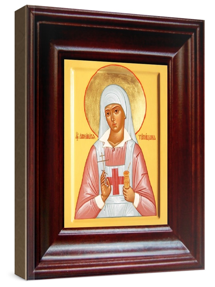 Икона аполлинария тупицына (21х24), простой киот. Лик нанесен методом шелкографии на цельную липовую доску, покрытую левкасом (специальным грунтом под живопись). Использованы минеральные (природные) краски. Размер иконы без киота (см): 13х16, с киотом: 21х24. Киот со стеклом, выполнен из березы. Икона освящена.