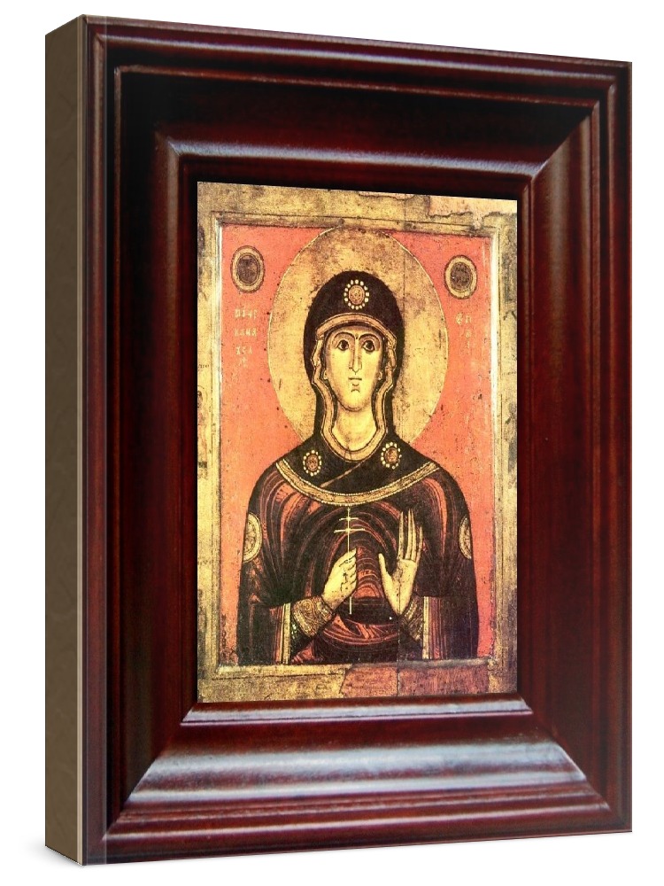 Икона иулиания никомидийская (21х24), простой киот. Лик нанесен методом шелкографии на цельную липовую доску, покрытую левкасом (специальным грунтом под живопись). Использованы минеральные (природные) краски. Размер иконы без киота (см): 13х16, с киотом: 21х24. Киот со стеклом, выполнен из березы. Икона освящена.