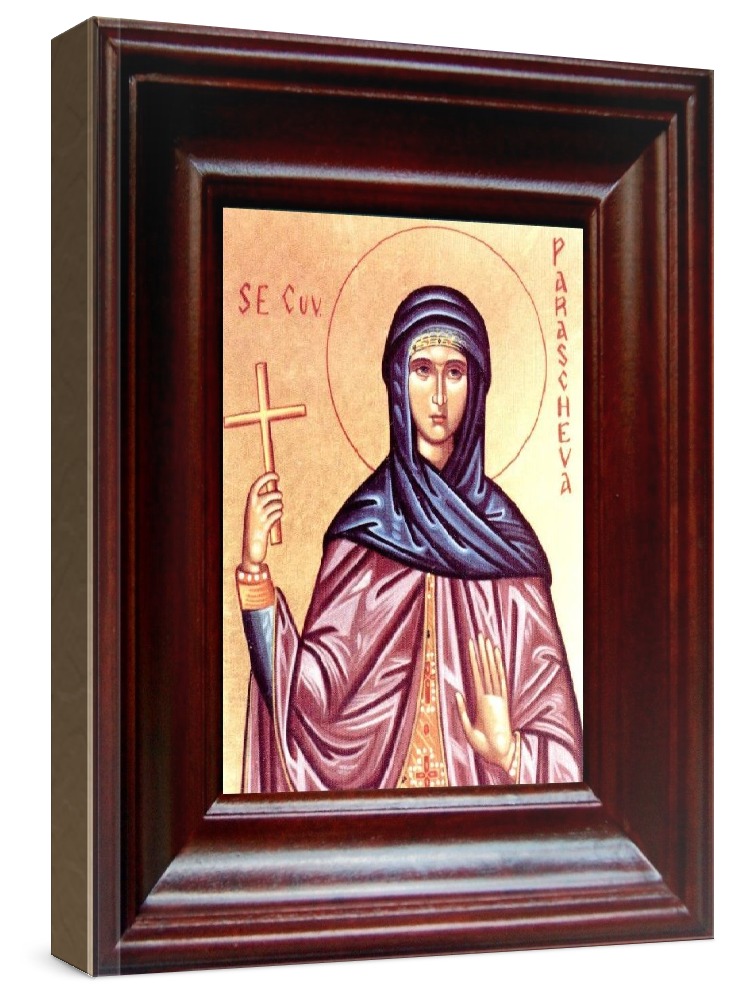 Икона параскева петка сербская (21х24), простой киот. Лик нанесен методом шелкографии на цельную липовую доску, покрытую левкасом (специальным грунтом под живопись). Использованы минеральные (природные) краски. Размер иконы без киота (см): 13х16, с киотом: 21х24. Киот со стеклом, выполнен из березы. Икона освящена.
