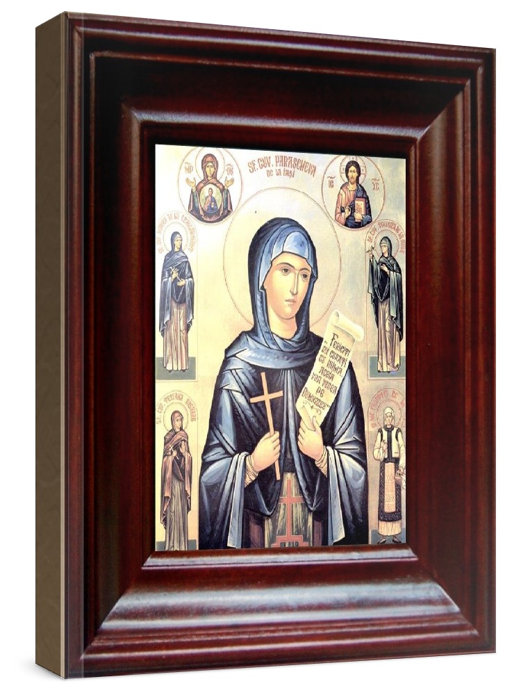 Икона параскева петка сербская (21х24), простой киот. Лик нанесен методом шелкографии на цельную липовую доску, покрытую левкасом (специальным грунтом под живопись). Использованы минеральные (природные) краски. Размер иконы без киота (см): 13х16, с киотом: 21х24. Киот со стеклом, выполнен из березы. Икона освящена.