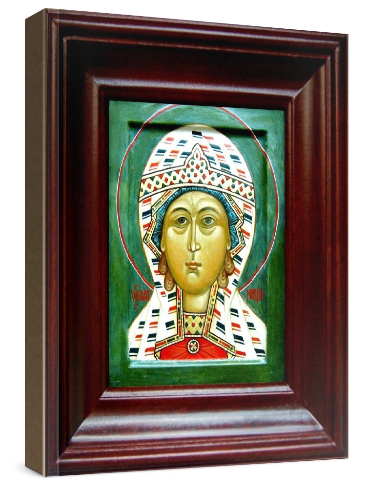 Икона параскева пятница (21х24), простой киот. Лик нанесен методом шелкографии на цельную липовую доску, покрытую левкасом (специальным грунтом под живопись). Использованы минеральные (природные) краски. Размер иконы без киота (см): 13х16, с киотом: 21х24. Киот со стеклом, выполнен из березы. Икона освящена.