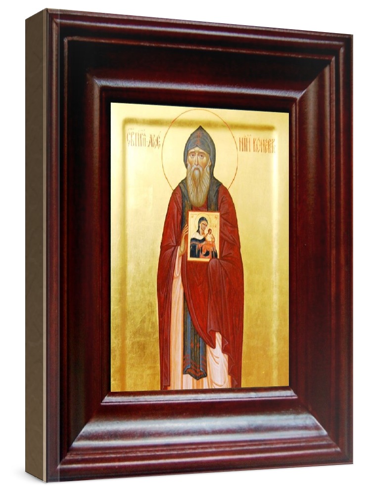 Икона арсений коневский (21х24), простой киот. Лик нанесен методом шелкографии на цельную липовую доску, покрытую левкасом (специальным грунтом под живопись). Использованы минеральные (природные) краски. Размер иконы без киота (см): 13х16, с киотом: 21х24. Киот со стеклом, выполнен из березы. Икона освящена.