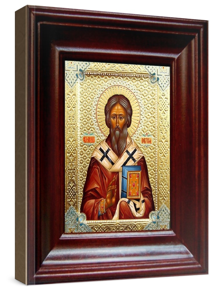 Икона геннадий новгородский (21х24), простой киот. Лик нанесен методом шелкографии на цельную липовую доску, покрытую левкасом (специальным грунтом под живопись). Использованы минеральные (природные) краски. Размер иконы без киота (см): 13х16, с киотом: 21х24. Киот со стеклом, выполнен из березы. Икона освящена.