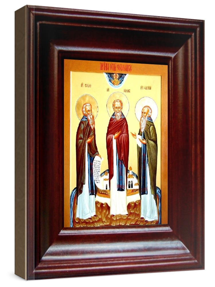 Икона герман соловецкий (21х24), простой киот. Лик нанесен методом шелкографии на цельную липовую доску, покрытую левкасом (специальным грунтом под живопись). Использованы минеральные (природные) краски. Размер иконы без киота (см): 13х16, с киотом: 21х24. Киот со стеклом, выполнен из березы. Икона освящена.