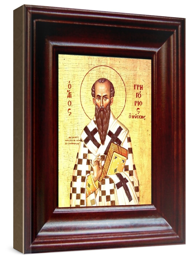 Икона григорий нисский (21х24), простой киот. Лик нанесен методом шелкографии на цельную липовую доску, покрытую левкасом (специальным грунтом под живопись). Использованы минеральные (природные) краски. Размер иконы без киота (см): 13х16, с киотом: 21х24. Киот со стеклом, выполнен из березы. Икона освящена.