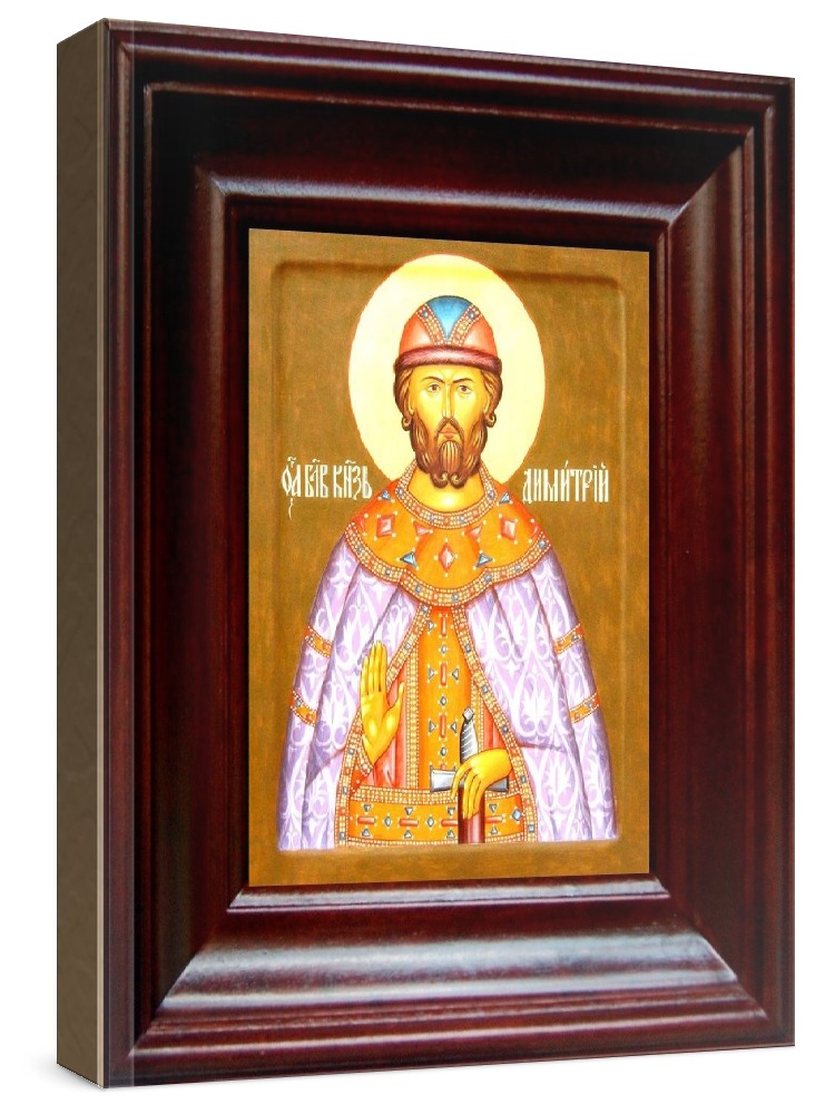 Икона димитрий донской (21х24), простой киот. Лик нанесен методом шелкографии на цельную липовую доску, покрытую левкасом (специальным грунтом под живопись). Использованы минеральные (природные) краски. Размер иконы без киота (см): 13х16, с киотом: 21х24. Киот со стеклом, выполнен из березы. Икона освящена.