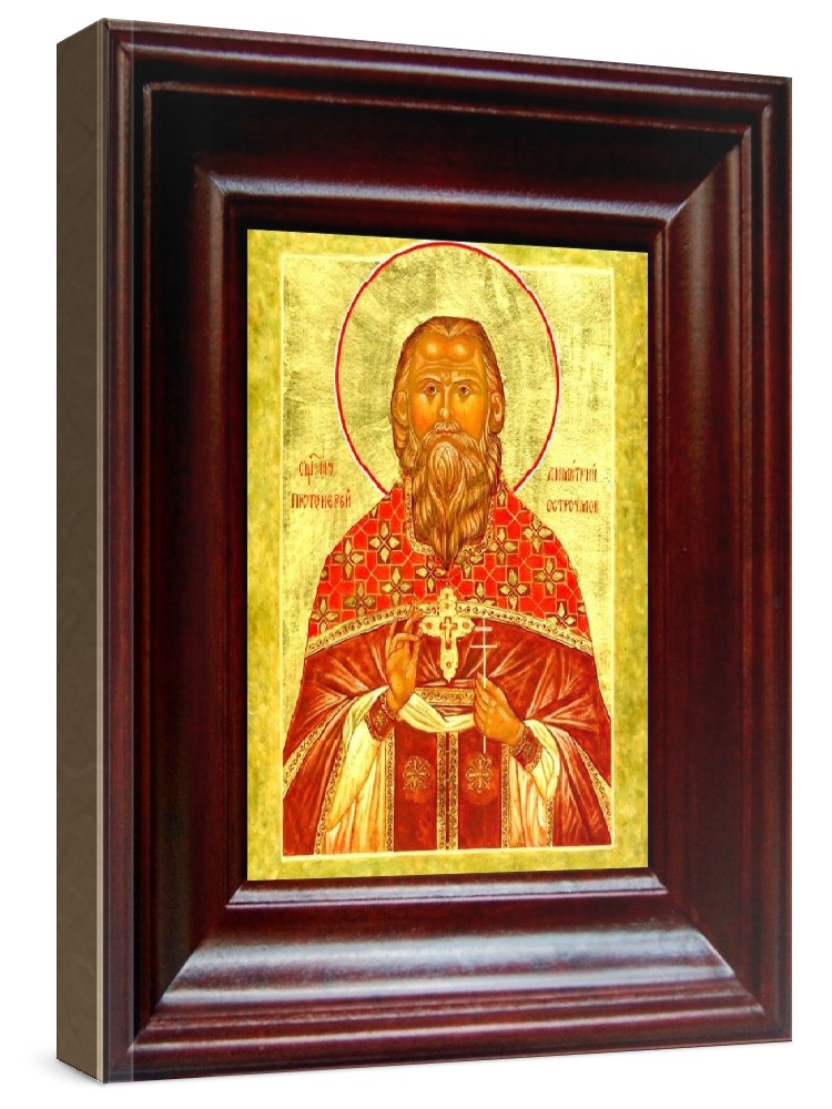 Икона димитрий остроумов (21х24), простой киот. Лик нанесен методом шелкографии на цельную липовую доску, покрытую левкасом (специальным грунтом под живопись). Использованы минеральные (природные) краски. Размер иконы без киота (см): 13х16, с киотом: 21х24. Киот со стеклом, выполнен из березы. Икона освящена.