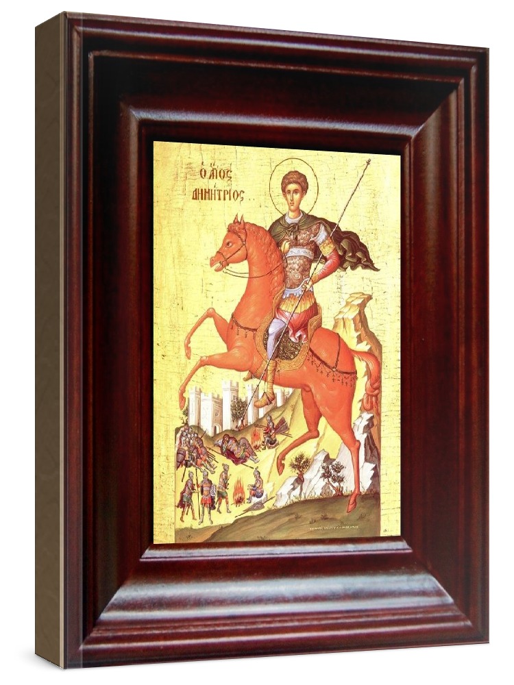 Икона димитрий солунский (21х24), простой киот. Лик нанесен методом шелкографии на цельную липовую доску, покрытую левкасом (специальным грунтом под живопись). Использованы минеральные (природные) краски. Размер иконы без киота (см): 13х16, с киотом: 21х24. Киот со стеклом, выполнен из березы. Икона освящена.