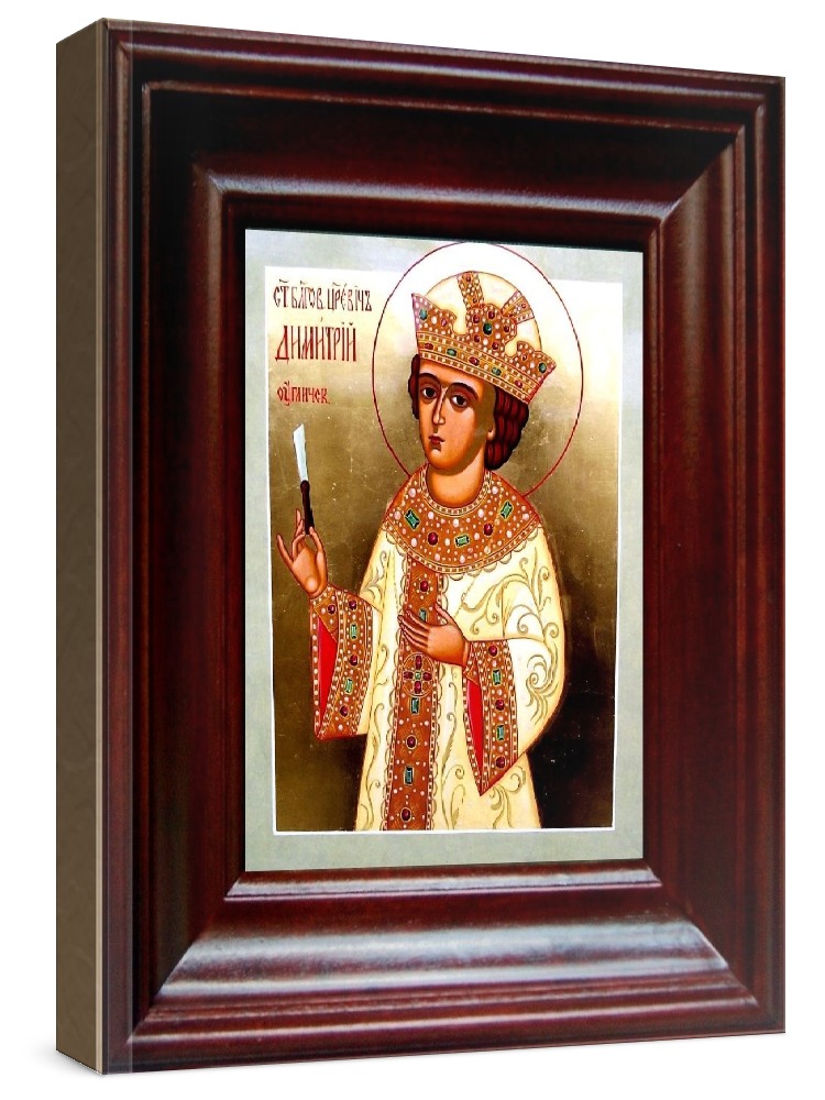 Икона димитрий угличский (21х24), простой киот. Лик нанесен методом шелкографии на цельную липовую доску, покрытую левкасом (специальным грунтом под живопись). Использованы минеральные (природные) краски. Размер иконы без киота (см): 13х16, с киотом: 21х24. Киот со стеклом, выполнен из березы. Икона освящена.