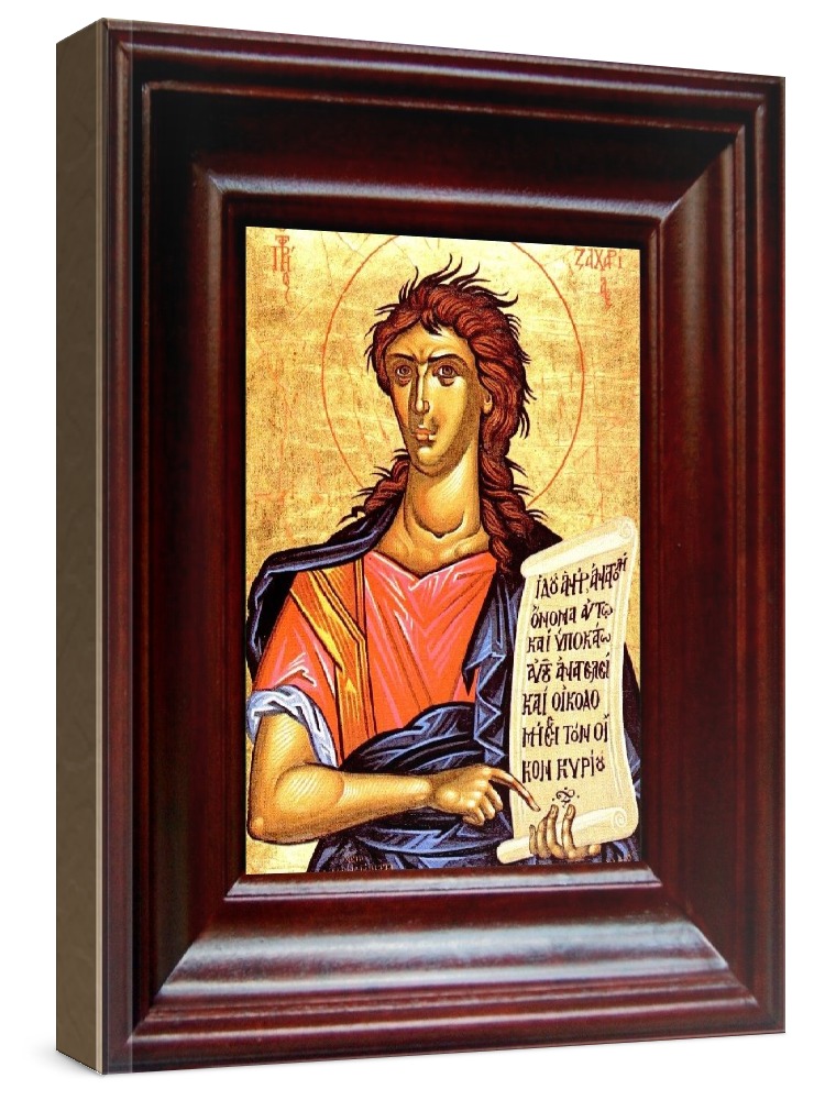 Икона захария серповидец (21х24), простой киот. Лик нанесен методом шелкографии на цельную липовую доску, покрытую левкасом (специальным грунтом под живопись). Использованы минеральные (природные) краски. Размер иконы без киота (см): 13х16, с киотом: 21х24. Киот со стеклом, выполнен из березы. Икона освящена.