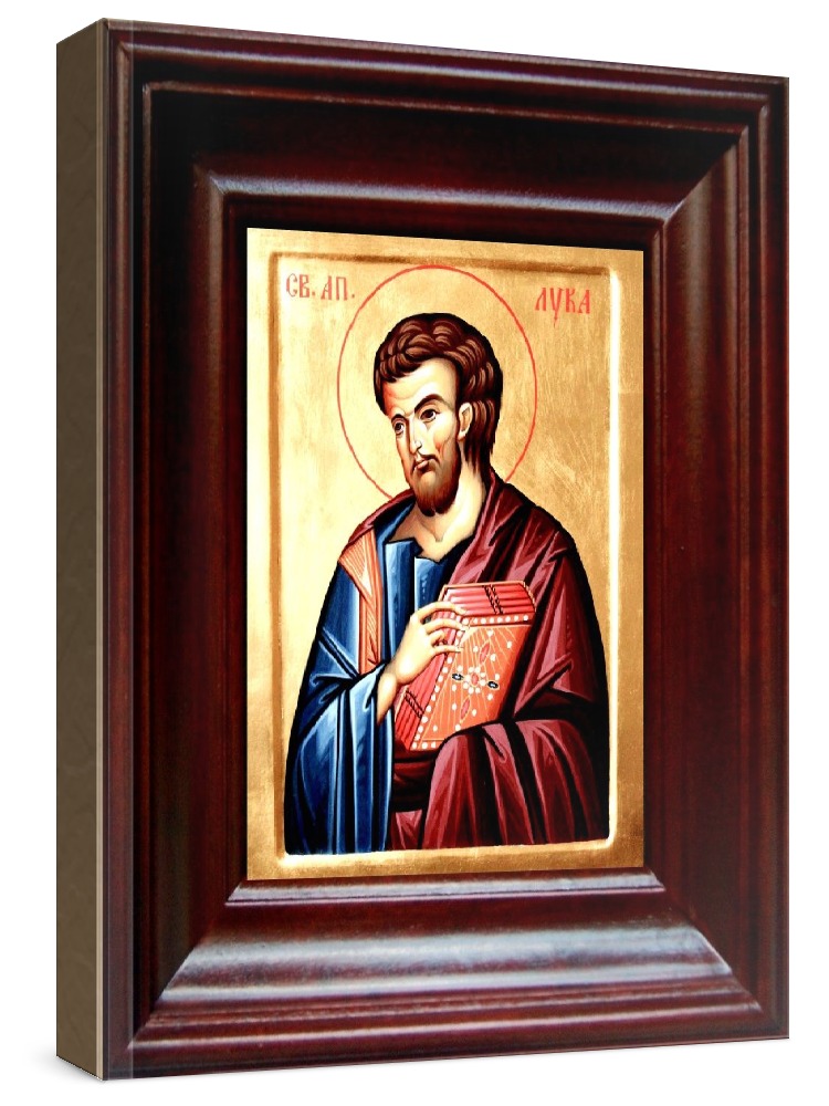 Икона лука, апостол (21х24), простой киот. Лик нанесен методом шелкографии на цельную липовую доску, покрытую левкасом (специальным грунтом под живопись). Использованы минеральные (природные) краски. Размер иконы без киота (см): 13х16, с киотом: 21х24. Киот со стеклом, выполнен из березы. Икона освящена.