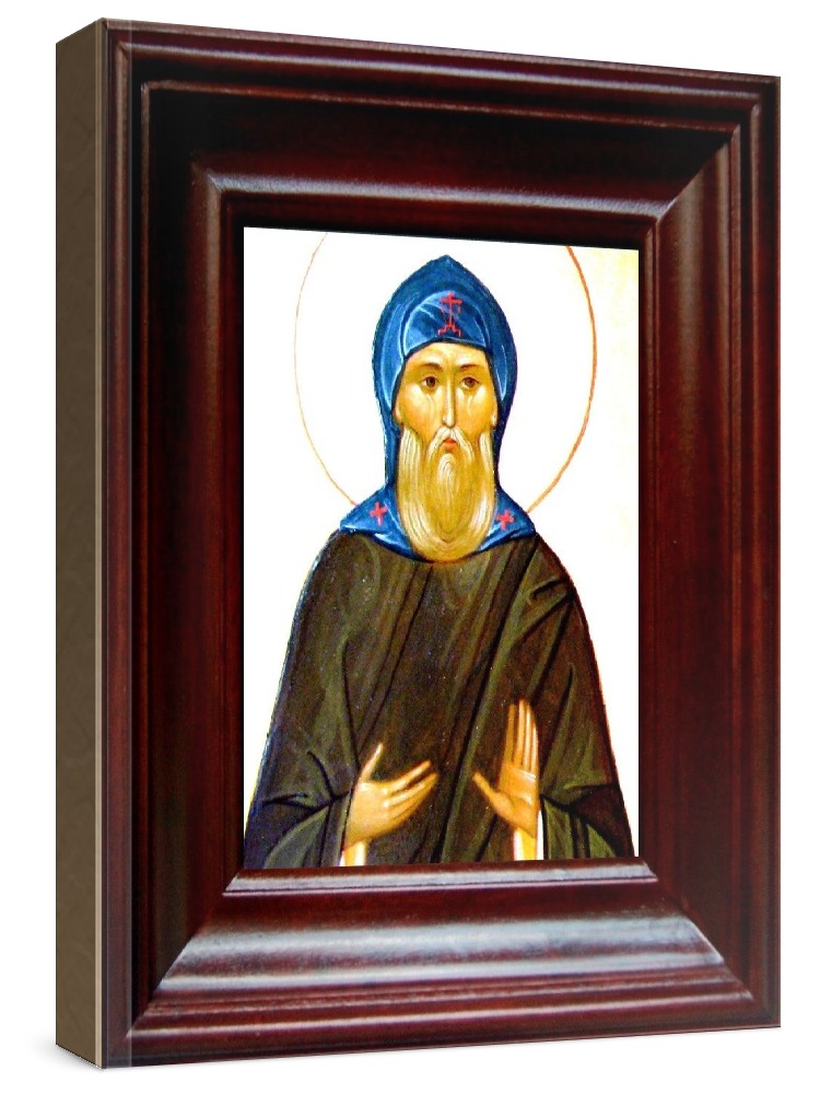 Икона михей радонежский (21х24), простой киот. Лик нанесен методом шелкографии на цельную липовую доску, покрытую левкасом (специальным грунтом под живопись). Использованы минеральные (природные) краски. Размер иконы без киота (см): 13х16, с киотом: 21х24. Киот со стеклом, выполнен из березы. Икона освящена.