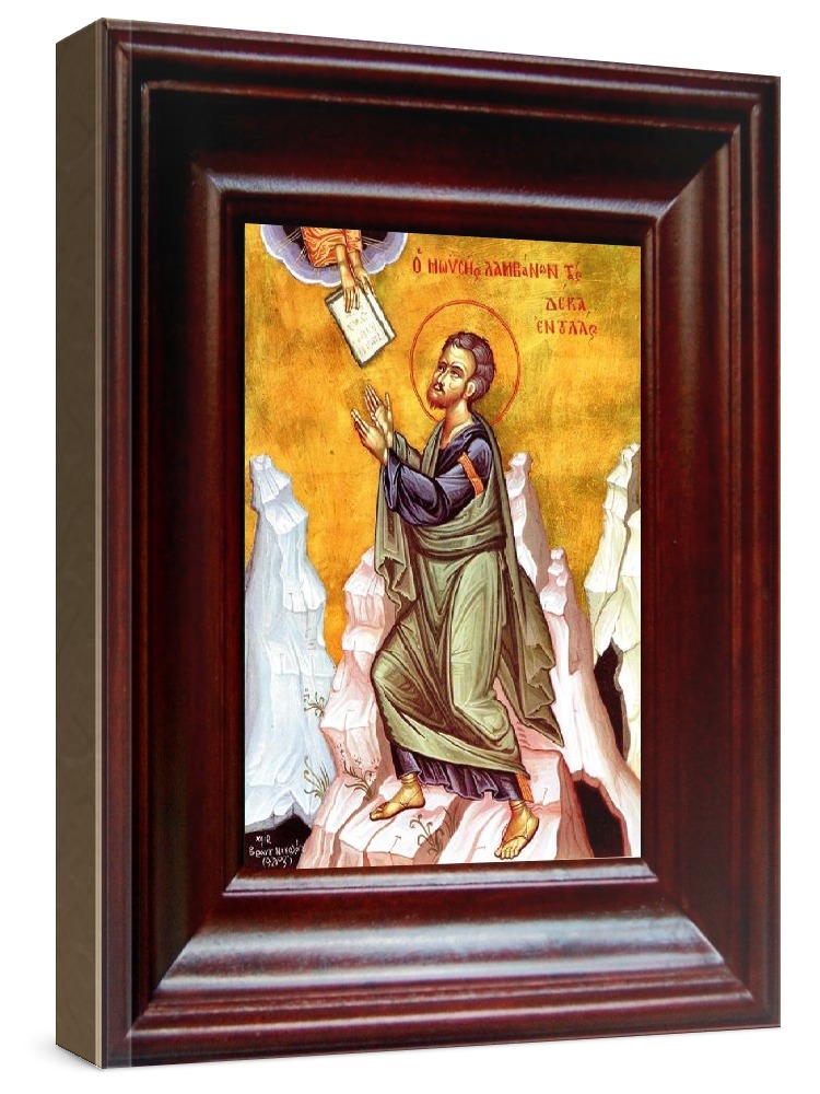 Икона моисей, пророк (21х24), простой киот. Лик нанесен методом шелкографии на цельную липовую доску, покрытую левкасом (специальным грунтом под живопись). Использованы минеральные (природные) краски. Размер иконы без киота (см): 13х16, с киотом: 21х24. Киот со стеклом, выполнен из березы. Икона освящена.