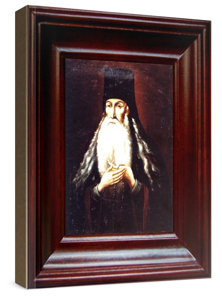 Икона паисий величковский (21х24), простой киот. Лик нанесен методом шелкографии на цельную липовую доску, покрытую левкасом (специальным грунтом под живопись). Использованы минеральные (природные) краски. Размер иконы без киота (см): 13х16, с киотом: 21х24. Киот со стеклом, выполнен из березы. Икона освящена.