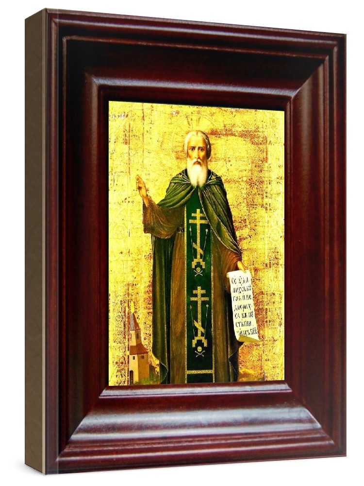 Икона стефан махрищский (21х24), простой киот. Лик нанесен методом шелкографии на цельную липовую доску, покрытую левкасом (специальным грунтом под живопись). Использованы минеральные (природные) краски. Размер иконы без киота (см): 13х16, с киотом: 21х24. Киот со стеклом, выполнен из березы. Икона освящена.