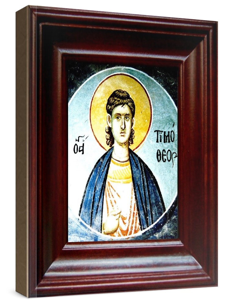 Икона тимофей палестинский (21х24), простой киот. Лик нанесен методом шелкографии на цельную липовую доску, покрытую левкасом (специальным грунтом под живопись). Использованы минеральные (природные) краски. Размер иконы без киота (см): 13х16, с киотом: 21х24. Киот со стеклом, выполнен из березы. Икона освящена.