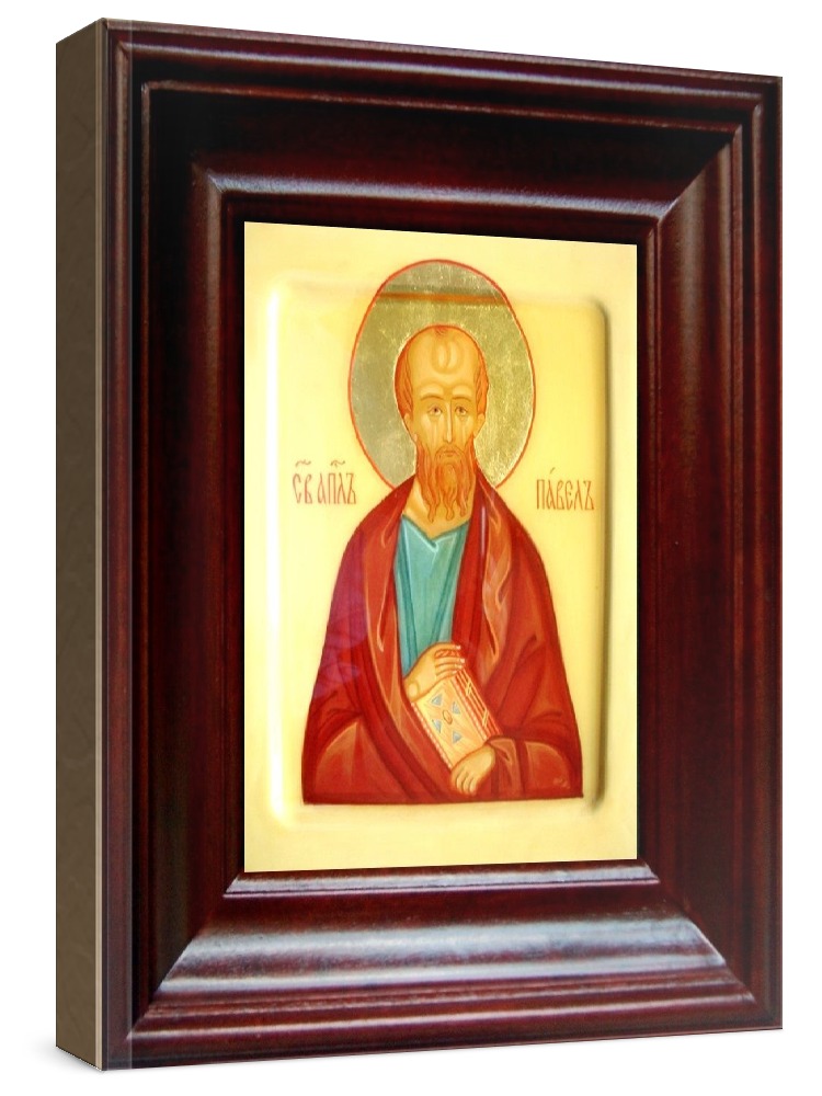 Икона павел, апостол (21х24), простой киот. Лик нанесен методом шелкографии на цельную липовую доску, покрытую левкасом (специальным грунтом под живопись). Использованы минеральные (природные) краски. Размер иконы без киота (см): 13х16, с киотом: 21х24. Киот со стеклом, выполнен из березы. Икона освящена.