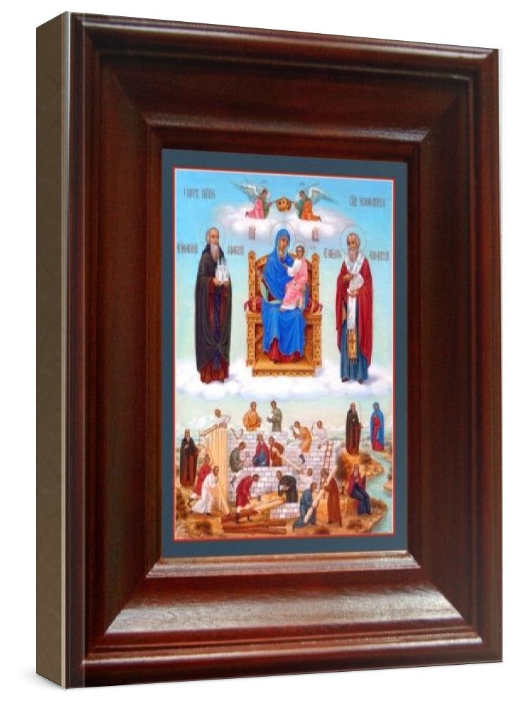 Икона экономисса (21х24), простой киот. Лик нанесен методом шелкографии на цельную липовую доску, покрытую левкасом (специальным грунтом под живопись). Использованы минеральные (природные) краски. Размер иконы без киота (см): 13х16, с киотом: 21х24. Киот (рамка) выполнен из березы. Икона освящена.