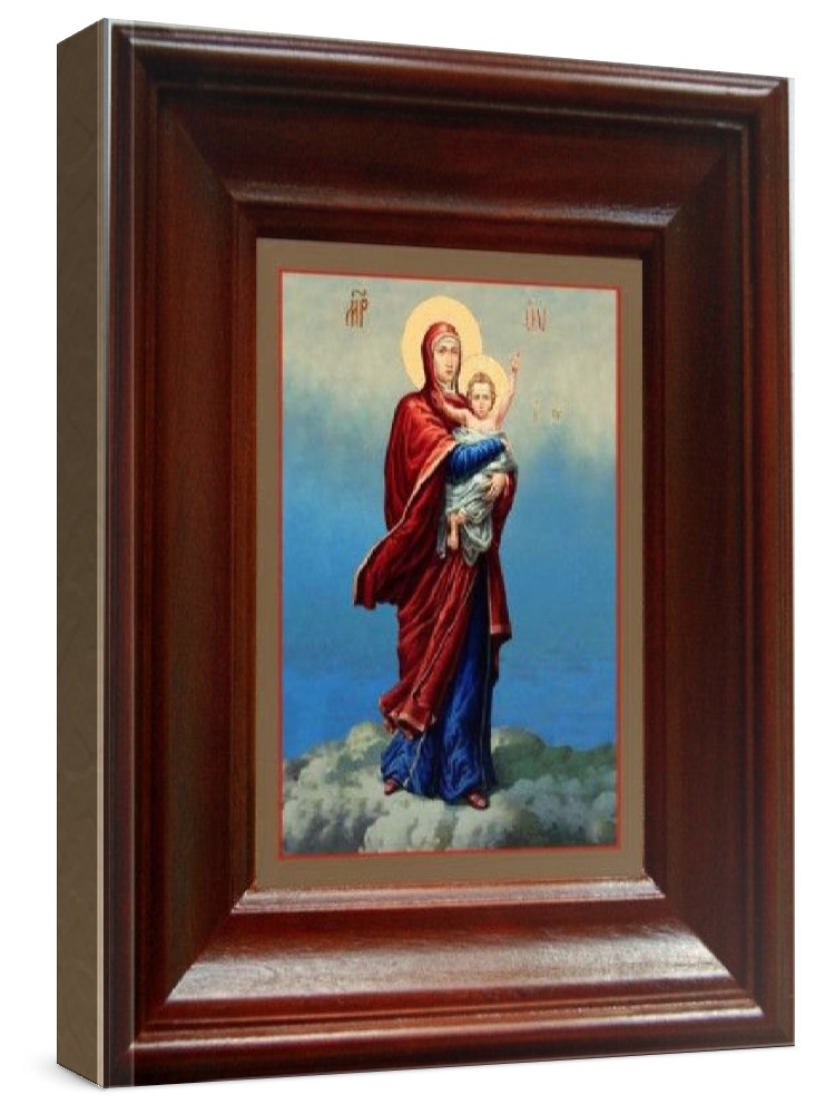 Икона благодатное небо (21х24), простой киот. Лик нанесен методом шелкографии на цельную липовую доску, покрытую левкасом (специальным грунтом под живопись). Использованы минеральные (природные) краски. Размер иконы без киота (см): 13х16, с киотом: 21х24. Киот (рамка) выполнен из березы. Икона освящена.