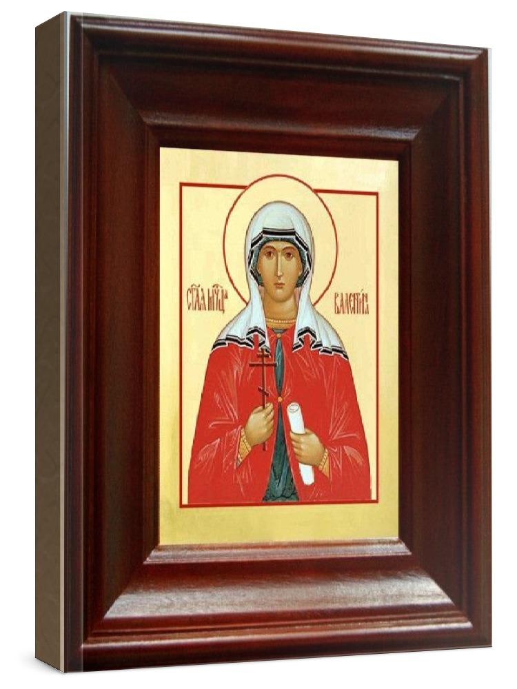 Икона валентина кесарийская (21х24), простой киот. Лик нанесен методом шелкографии на цельную липовую доску, покрытую левкасом (специальным грунтом под живопись). Использованы минеральные (природные) краски. Размер иконы без киота (см): 13х16, с киотом: 21х24. Киот (рамка) выполнен из березы. Икона освящена.