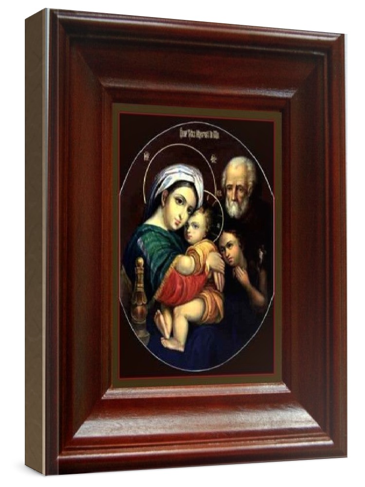 Икона трех радостей (21х24), простой киот. Лик нанесен методом шелкографии на цельную липовую доску, покрытую левкасом (специальным грунтом под живопись). Использованы минеральные (природные) краски. Размер иконы без киота (см): 13х16, с киотом: 21х24. Киот (рамка) выполнен из березы. Икона освящена.