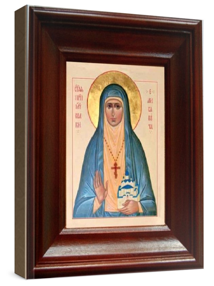 Икона елизавета федоровна романова (21х24), простой киот. Лик нанесен методом шелкографии на цельную липовую доску, покрытую левкасом (специальным грунтом под живопись). Использованы минеральные (природные) краски. Размер иконы без киота (см): 13х16, с киотом: 21х24. Киот (рамка) выполнен из березы. Икона освящена.