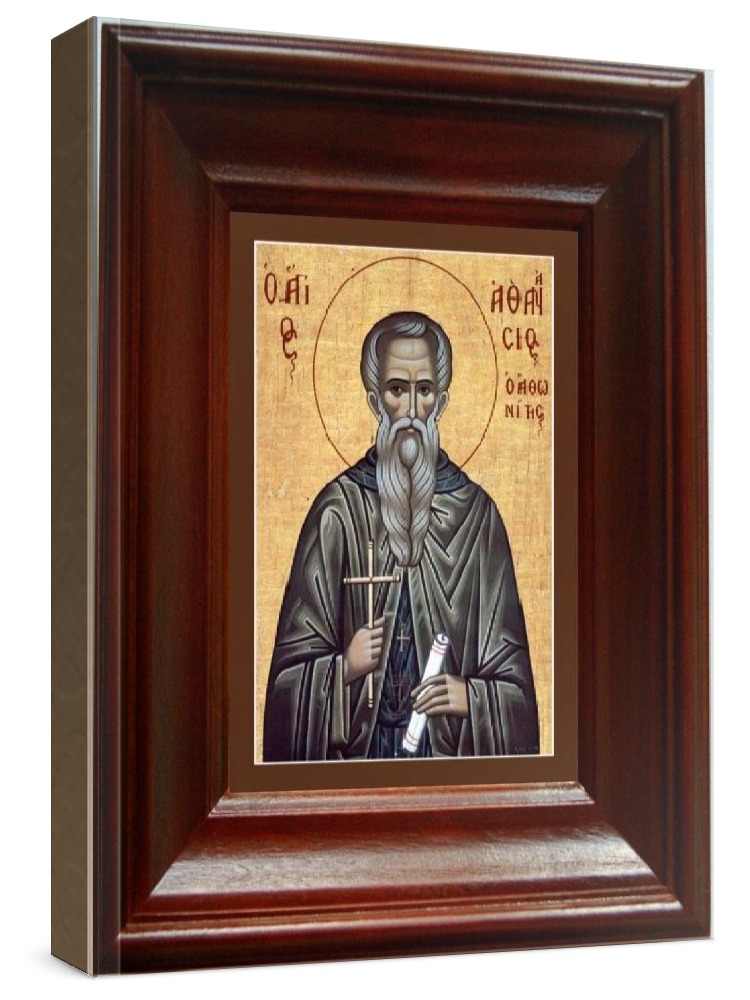 Икона афанасий афонский (21х24), простой киот. Лик нанесен методом шелкографии на цельную липовую доску, покрытую левкасом (специальным грунтом под живопись). Использованы минеральные (природные) краски. Размер иконы без киота (см): 13х16, с киотом: 21х24. Киот (рамка) выполнен из березы. Икона освящена.