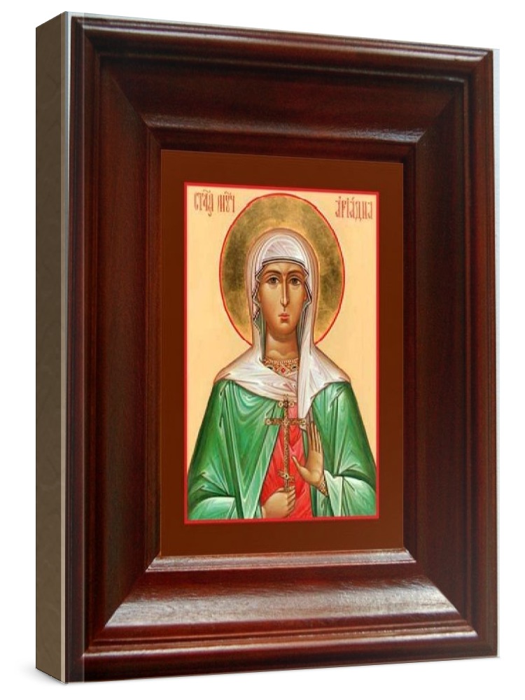 Икона ариадна промисская (21х24), простой киот.     Лик нанесен методом шелкографии на цельную липовую доску, покрытую левкасом (специальным грунтом под живопись). Использованы минеральные (природные) краски. Размер иконы без киота (см): 13х16, с киотом: 21х24. Киот (рамка) выполнен из березы. Икона освящена.