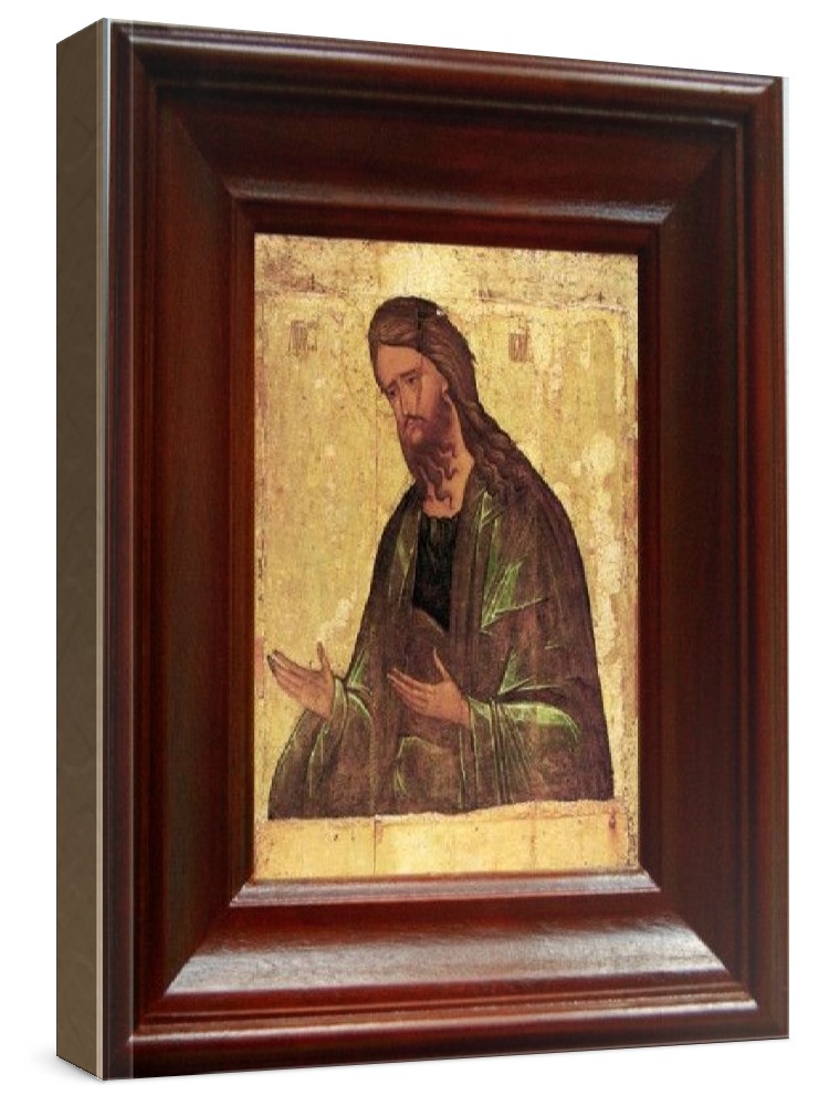 Лик нанесен методом шелкографии на цельную липовую доску, покрытую левкасом (специальным грунтом под живопись). Использованы минеральные (природные) краски. Размер иконы без киота (см): 13х16, с киотом: 21х24. Киот (рамка) выполнен из березы. Икона освящена.