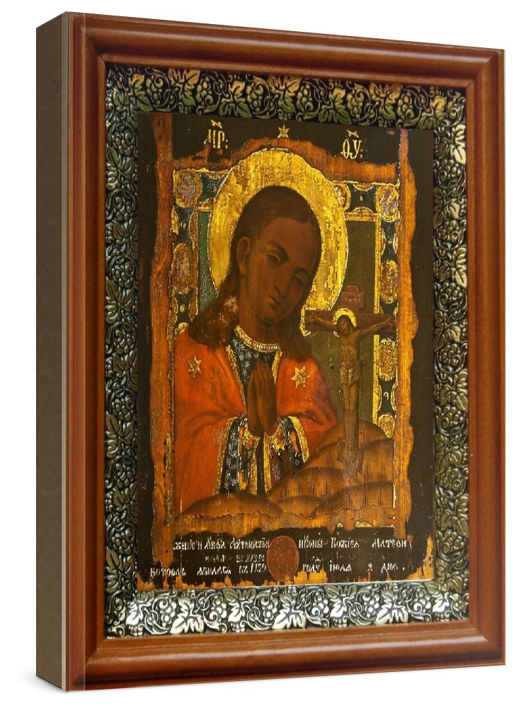 Ахтырская икона бм (19х22), светлый киот. Икона выполняется на заказ. Срок изготовления - 2-5 дней. Лик нанесен методом шелкографии на цельную липовую доску, покрытую левкасом (специальным грунтом под живопись). Использованы минеральные (природные) краски. Размер иконы без киота (см): 13х16, с киотом: 19х22. Киот (рамка) выполнен из березы и украшен басмой (узор из черненой меди в виде виноградной лозы). Икона освящена.