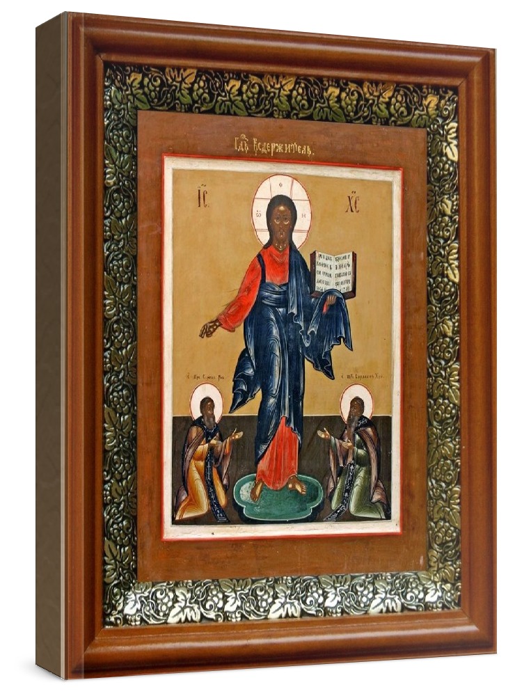 Икона спас смоленский (19х22), светлый киот. Икона выполняется на заказ. Срок изготовления - 2-5 дней. Лик нанесен методом шелкографии на цельную липовую доску, покрытую левкасом (специальным грунтом под живопись). Использованы минеральные (природные) краски. Размер иконы без киота (см): 13х16, с киотом: 19х22. Киот (рамка) выполнен из березы и украшен басмой (узор из черненой меди в виде виноградной лозы). Икона освящена.